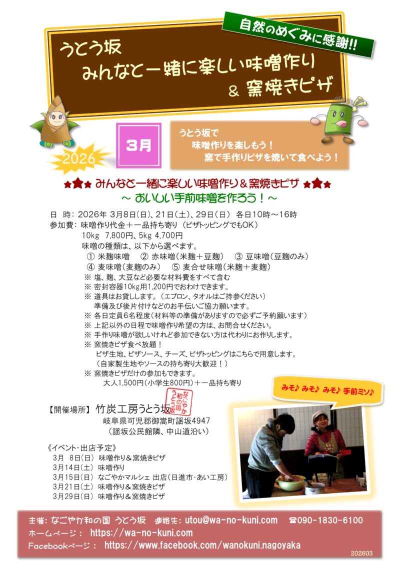 2026年3月、みんなと一緒に楽しい味噌作り&窯焼きピザ